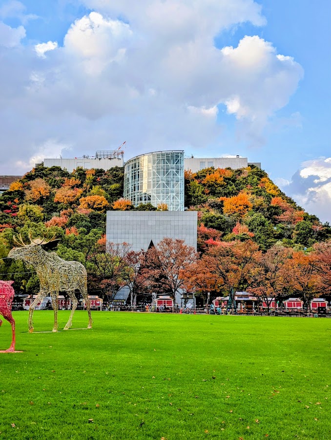 いま福岡市天神中央公園北側のアクロス山が紅葉している。
